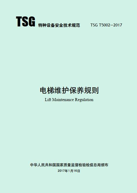 《電梯維護(hù)保養(yǎng)規(guī)則 TSG T5002—2017》國(guó)家質(zhì)量監(jiān)督檢驗(yàn)檢疫總局