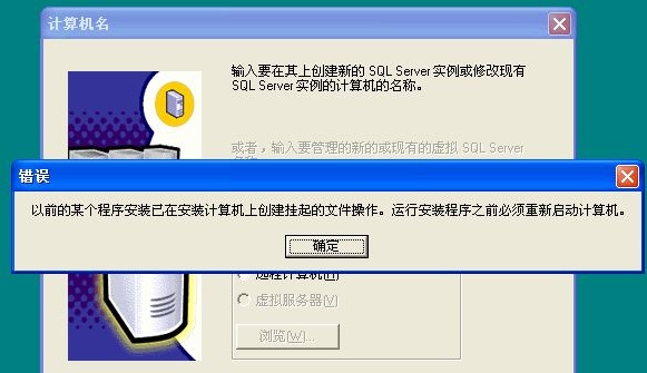 重新安裝SQL Server的時(shí)候出現(xiàn)的情況!耙郧暗哪硞(gè)程序已在安裝計(jì)算機(jī)上創(chuàng)建掛起的文件操作。運(yùn)行安裝之前必須重新啟動(dòng)計(jì)算機(jī)”的提示。