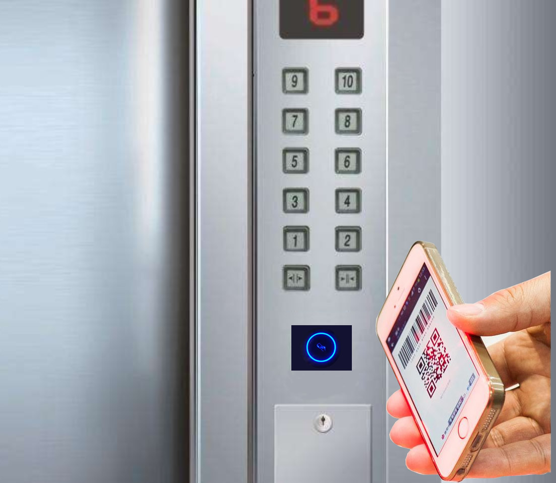 (3)訪客進入電梯后,無需按鍵,將二維碼對準(zhǔn)電梯二維碼讀頭,倍加信梯控系統(tǒng)后自動點亮樓層按鈕乘梯;