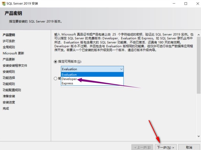 選擇Developer(開(kāi)發(fā)者)類型,不需要輸入秘鑰,點(diǎn)擊下一步