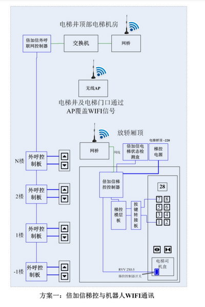 通訊模塊:如LORA/Wifi與4G結(jié)合的通訊方式,實(shí)現(xiàn)對(duì)電梯狀態(tài)的獲取和機(jī)器人乘梯指令的下發(fā)。
