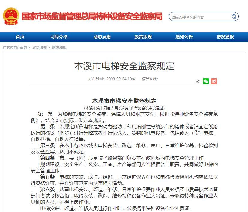 本溪市電梯安全監(jiān)察規(guī)定