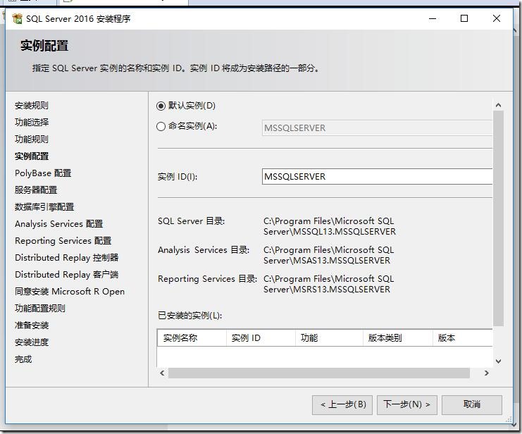 實(shí)例配置,使用默認(rèn)即可(如果之前安裝過(guò),這里需要特別注意下)