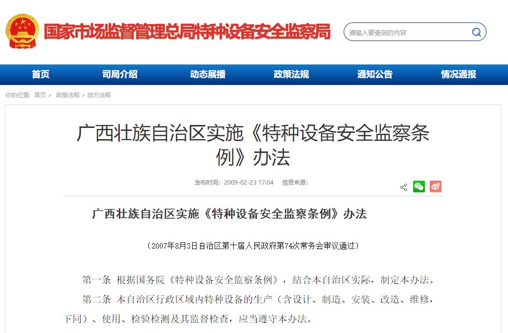 《廣西壯族自治區(qū)特種設(shè)備安全監(jiān)察條例》2007年8月3日自治區(qū)第十屆人民政府第74次常務(wù)會審議通過